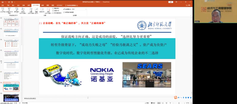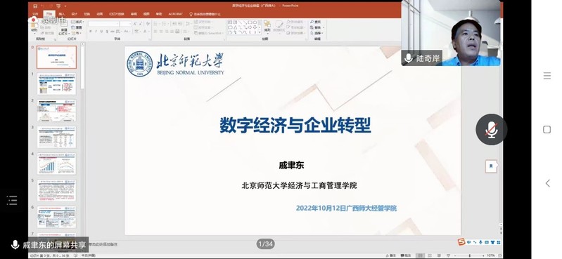 为加深学院师生对当前管理前沿思想的了解,拓展师生的学术视野和研究道路,2022年10月12日晚,北京师范大学戚聿东教授应我院邀请以腾讯会议的形式做“数字经济与企业转型”的主题讲座。学院教师、全体研究生、工商管理、会计学、人力资源管理专业本科生200余人参加本次讲座,陆奇岸院长主持。