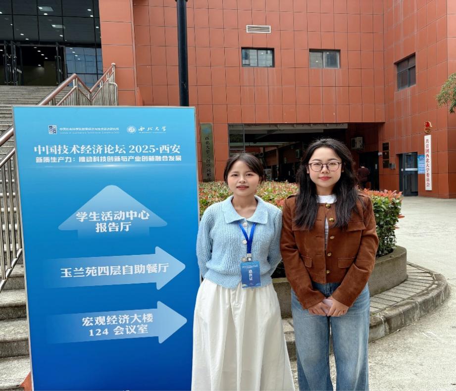 9月19日至21日,中国技术经济论坛2025·西安在陕西省西安市顺利召开。本次论坛由中国社会科学院数量经济与技术经济研究所、西北大学主办,西北大学经济管理学院与中国西部经济发展研究院共同承办。中国区域经济学会常务理事、中国区域经济学会珠江-西江经济带专业委员会副主任委员蒋团标教授指导的学生樊思琪、邵楚婷参加了此次论坛并交流学习。