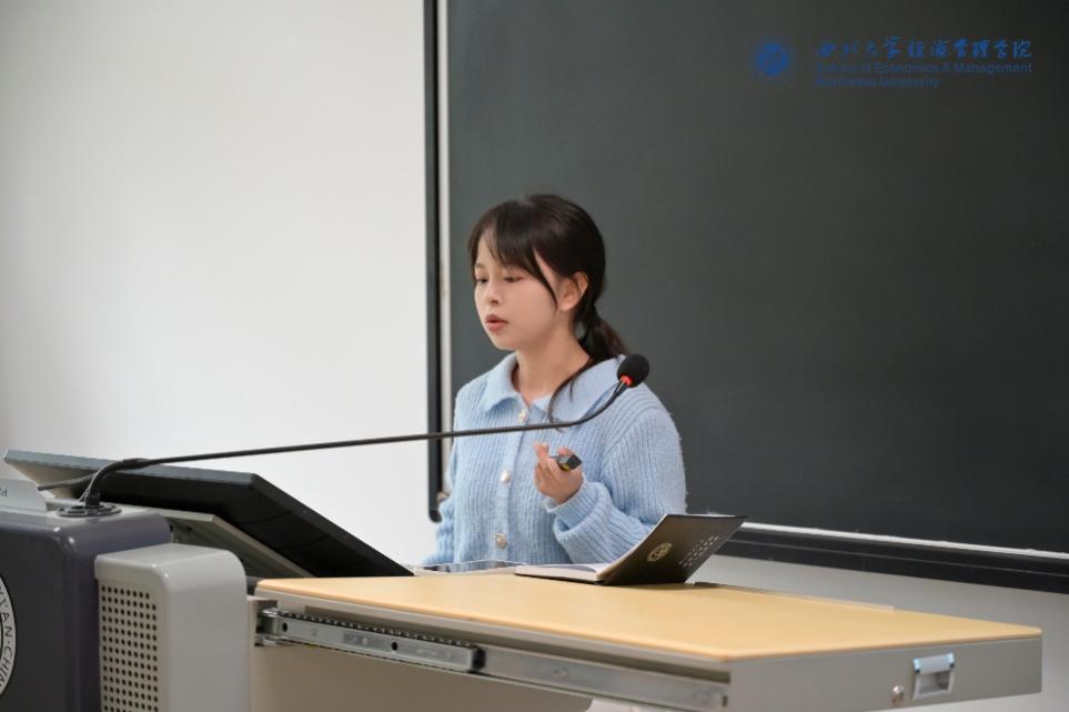 本次论坛紧扣“科技创新与产业创新融合发展”议题,深入探索创新经济学、产业经济学与技术经济学的交叉领域,与会学者就新质生产力、产业科技等前沿热点问题展开深入交流与热烈探讨。学院2024级硕士生樊思琪在分论坛(三)(数字经济与创新发展)上,以“数据要素市场化如何影响城市数字技术创新水平?”为题进行汇报分享,在论坛现场获得了专家的诸多宝贵的指导意见。