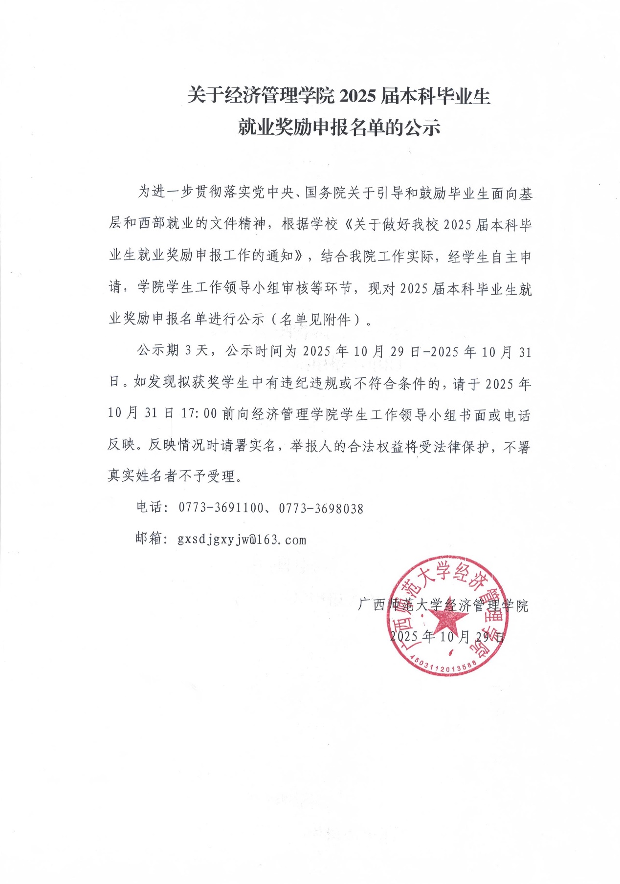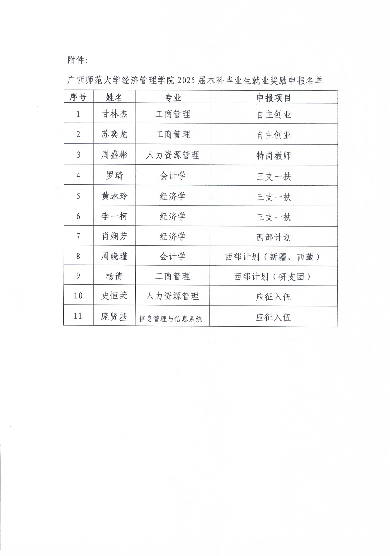 关于经济管理学院2025届本科毕业生就业奖励申报名单的公示