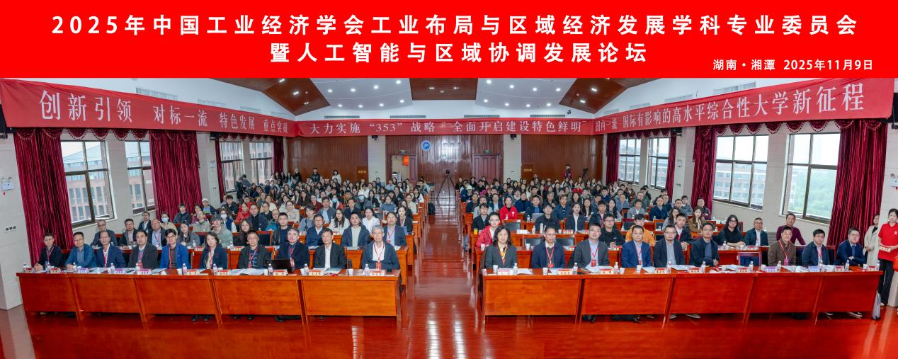 2025年11月9日,中国工业经济学会工业布局与区域经济发展学科专业委员会暨人工智能与区域协调发展论坛在湖南湘潭顺利召开。本次论坛由中国工业经济学会工业布局与区域经济发展学科专业委员会与湖南科技大学共同主办,湖南科技大学商学院承办。论坛围绕“人工智能与区域协调发展”这一主题,深入探讨人工智能推动区域协调发展的内在机制、实践路径与政策导向等前沿议题。