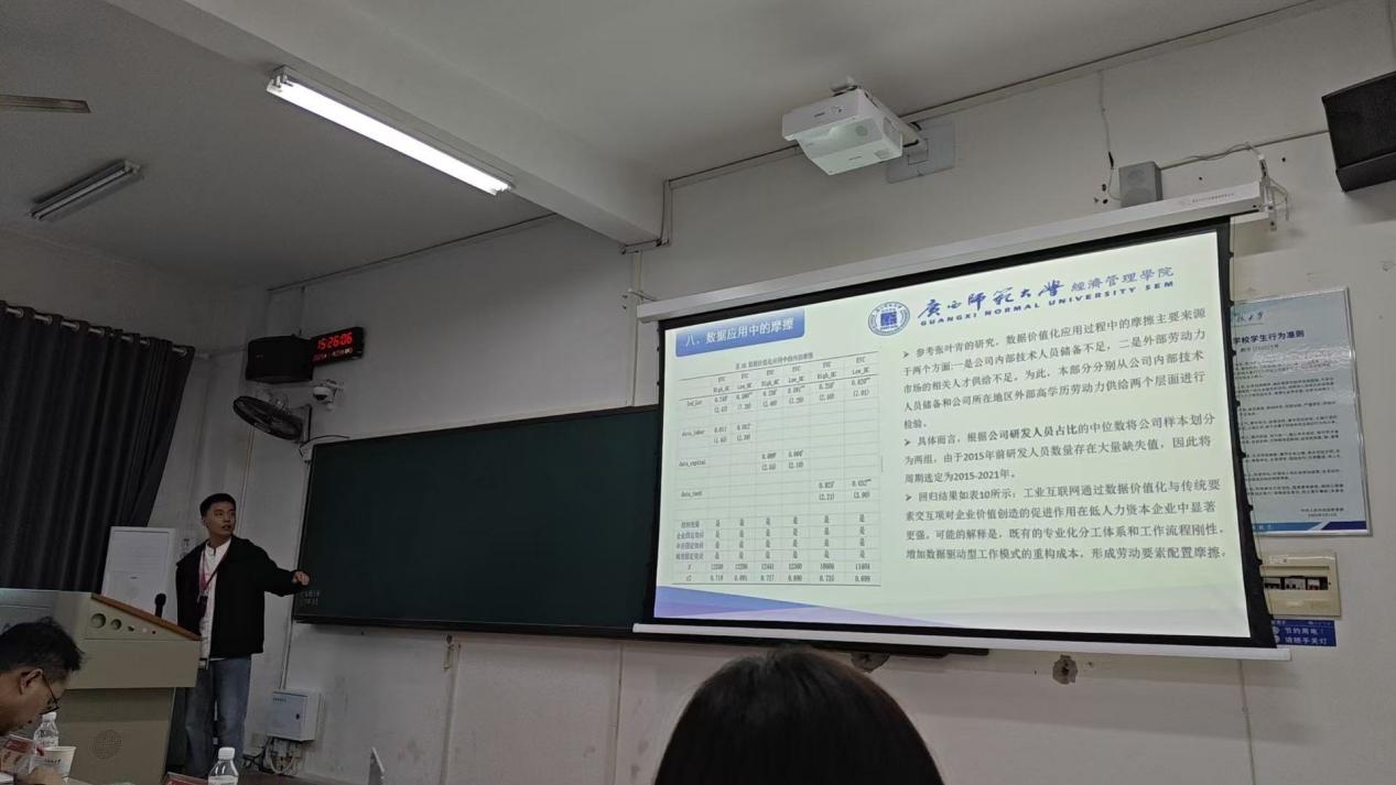 经济管理学院伍先福教授与2024级硕士研究生周志军合作完成的论文《工业互联网、数据价值化与企业价值创造》入选平行论坛二“人工智能与企业高质量发展”,周志军同学代表研究团队进行汇报,论文得到点评专家的充分肯定。