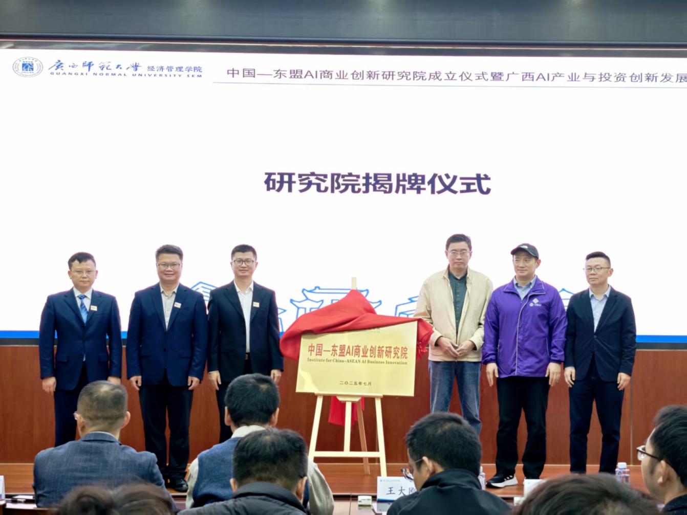 2025年11月9日,由广西师范大学经济管理学院与广西鼎象里供应链管理有限公司主办,广西(上海)产业合作中心、广西高校数字赋能经济发展重点实验室、广西师范大学东盟区域与国别研究院、广西数字经济研究院协办的“中国—东盟AI商业创新研究院成立仪式暨广西AI产业与投资创新发展论坛”在广西师范大学育才校区逸夫楼二楼报告厅隆重举行,此次论坛为经济管理学院成立20周年暨MBA办学15周年系列活动之一。