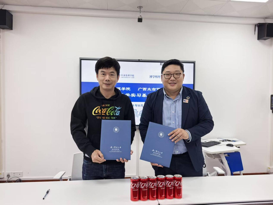 11月7日,经济管理学院与广西太古可口可乐饮料有限公司举行本科生教学实习基地签约授牌仪式。学院教学副院长、教学秘书及辅导员代表,广西太古可口可乐饮料有限公司部门负责人和高级经理出席仪式,共同见证双方校企协同育人合作新起点。