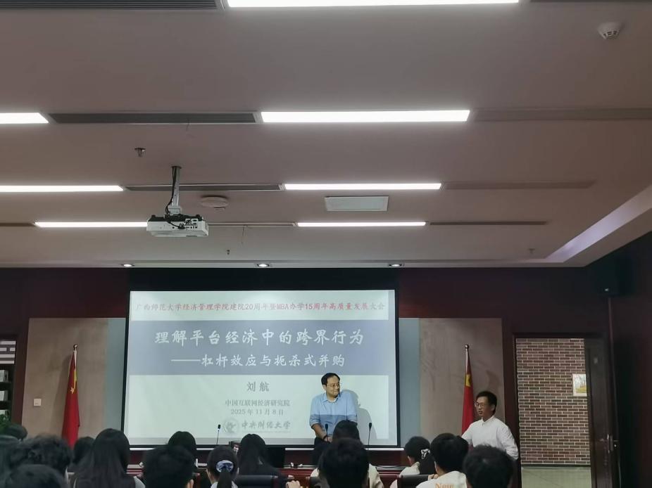 为提升学院师生的科研创新力,理解平台经济的竞争逻辑,经济管理学院于11月8日在雁山校区图书馆204会议室举办第33期暮桥经济学系列讲座。本次讲座特邀中央财经大学中国互联网经济研究院副院长刘航教授做“理解平台经济中的跨界行为”的主题讲座。