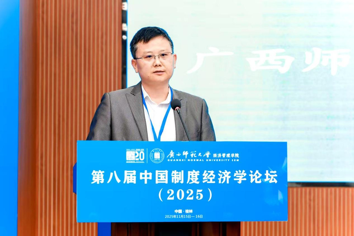 20251115日—16日,由山东大学经济研究院、北京大学国家发展研究院、浙江大学经济学院主办,广西师范大学经济管理学院承办,《制度经济学研究》编辑部、广西高校数字赋能经济发展重点实验室协办的“第八届中国制度经济学论坛”在广西师范大学育才校区国际交流中心成功举行。本次论坛亦广西师范大学经济管理学院成立20周年暨MBA办学15周年系列活动的重要组成部分。