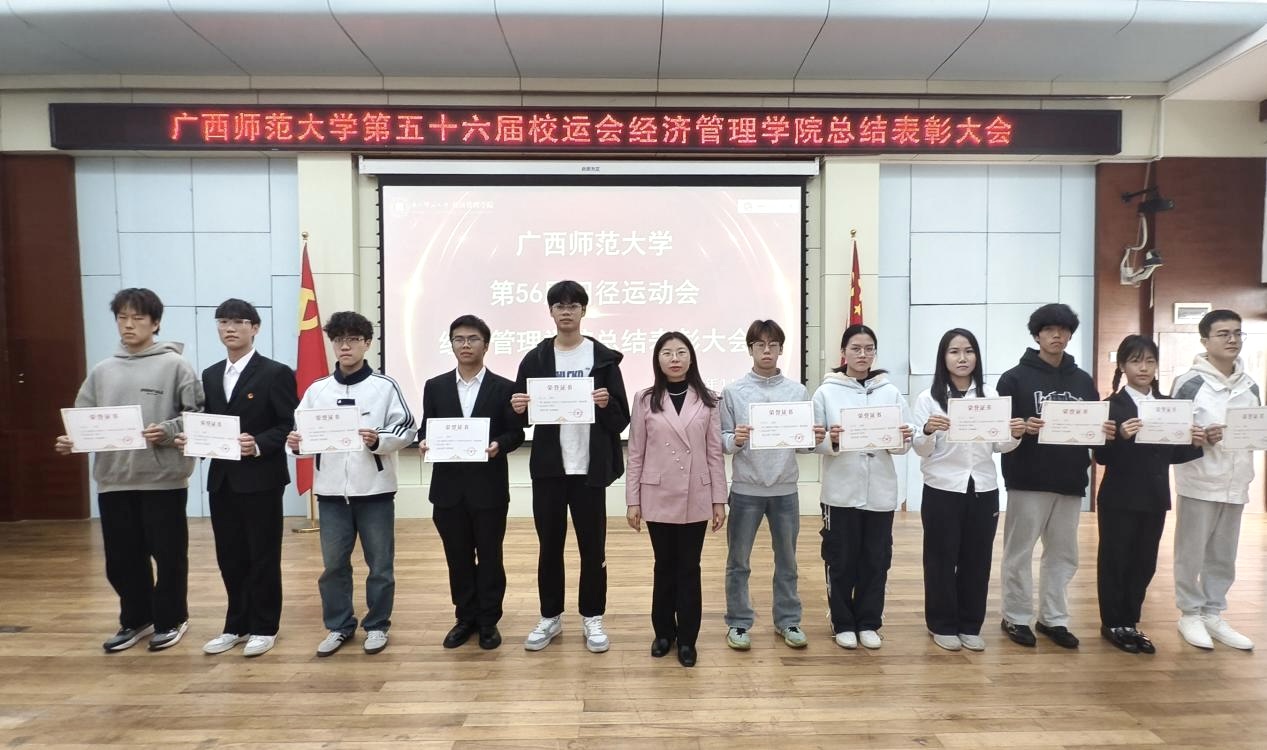 为表彰代表学院出战校运会并取得优异成绩的运动员,弘扬体育精神,11月21日下午,经济管理学院于文二区219学术报告厅举办第五十六届校运会总结表彰大会。学院党委主要负责人、学院分管学生工作负责人、学院团委负责人及各年级专兼职辅导员出席,运动员以及学生代表共100余人参加。