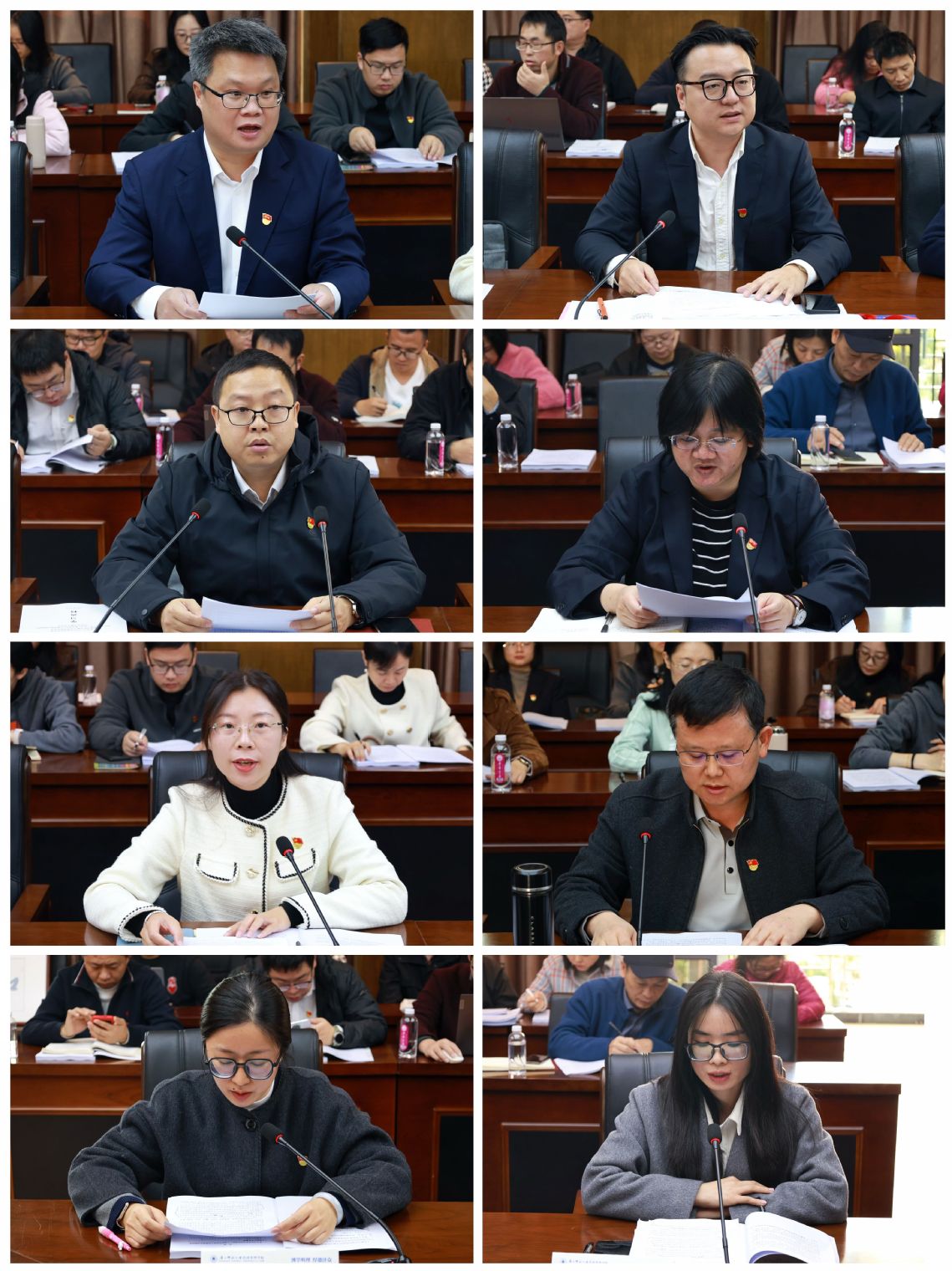 会议围绕党的二十届四中全会精神、《中国共产党第二十届中央委员会第四次全体会议公报》《中共中央关于制定国民经济和社会发展第十五个五年规划的建议》等主要内容,聚焦对标对表完善学院“十五五”规划,提升人才自主培养质量,全面从严治党和“清廉经管”建设,推动新时代学院统一战线工作高质量发展,进一步加强学生法制教育、安全教育,着力提升升学率、就业率等谈学习体会和思路举措。