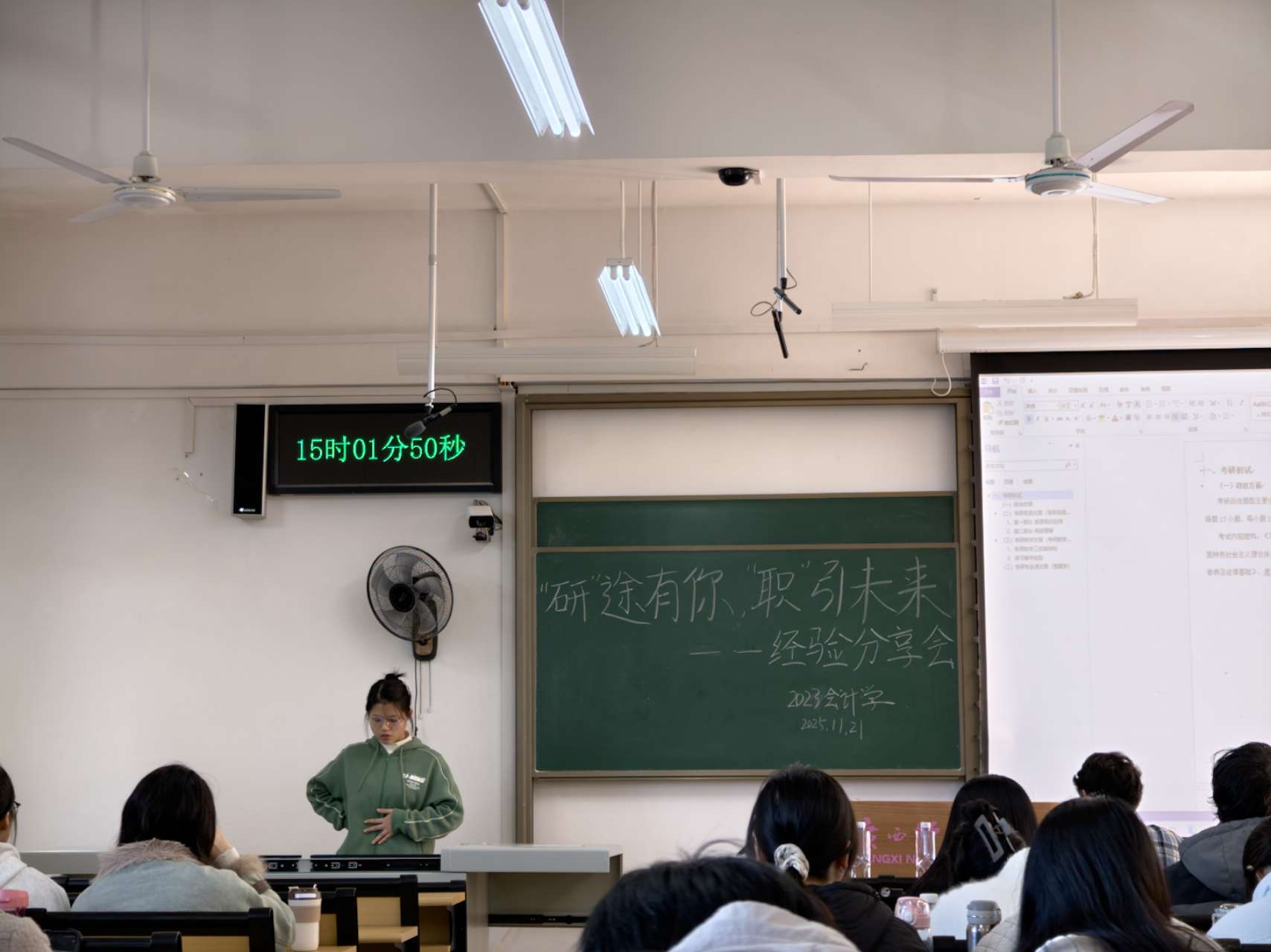 在互动环节,同学们围绕备考安排、支教团申请、就业能力提升等问题踊跃提问,三位师兄师姐耐心解答,现场气氛热烈。整场分享会不仅拓宽了同学们的视野,也进一步缓解了大家在学业与职业选择中的迷茫。