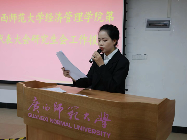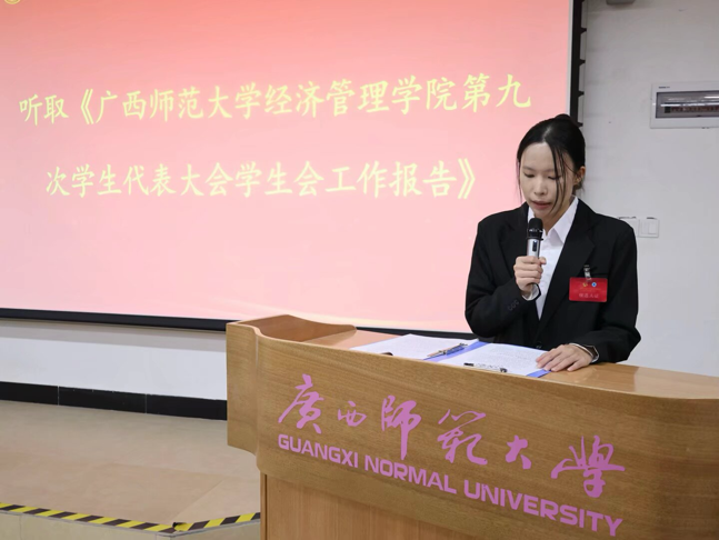 会上,学生委员会代表和研究生委员会代表向大会作工作报告,深刻总结了学生会和研究生会的各项工作成果,规划部署了下一阶段的改革发展工作。大会审议通过了《广西师范大学经济管理学院第九次学生代表大会提案工作委员会关于提案工作的报告》。