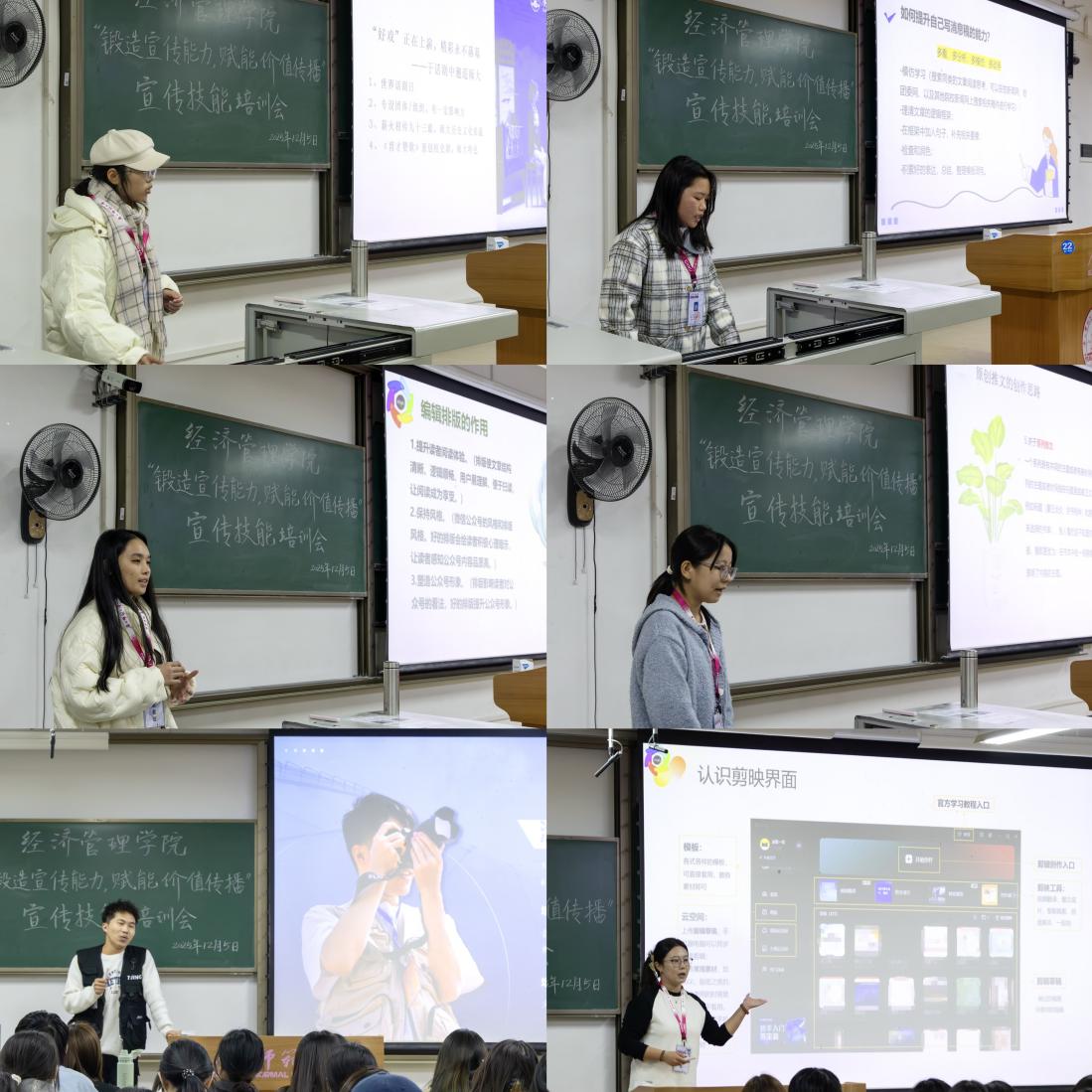 为进一步提升学生宣传骨干的专业素养,推动学院宣传工作提质增效,12月5日晚,经济管理学院在理三107教室举办“锻造宣传能力,赋能价值传播”宣传骨干交流培训会。学院学生记者团指导老师,各学生组织、社团、班级宣传骨干共百余人参会。