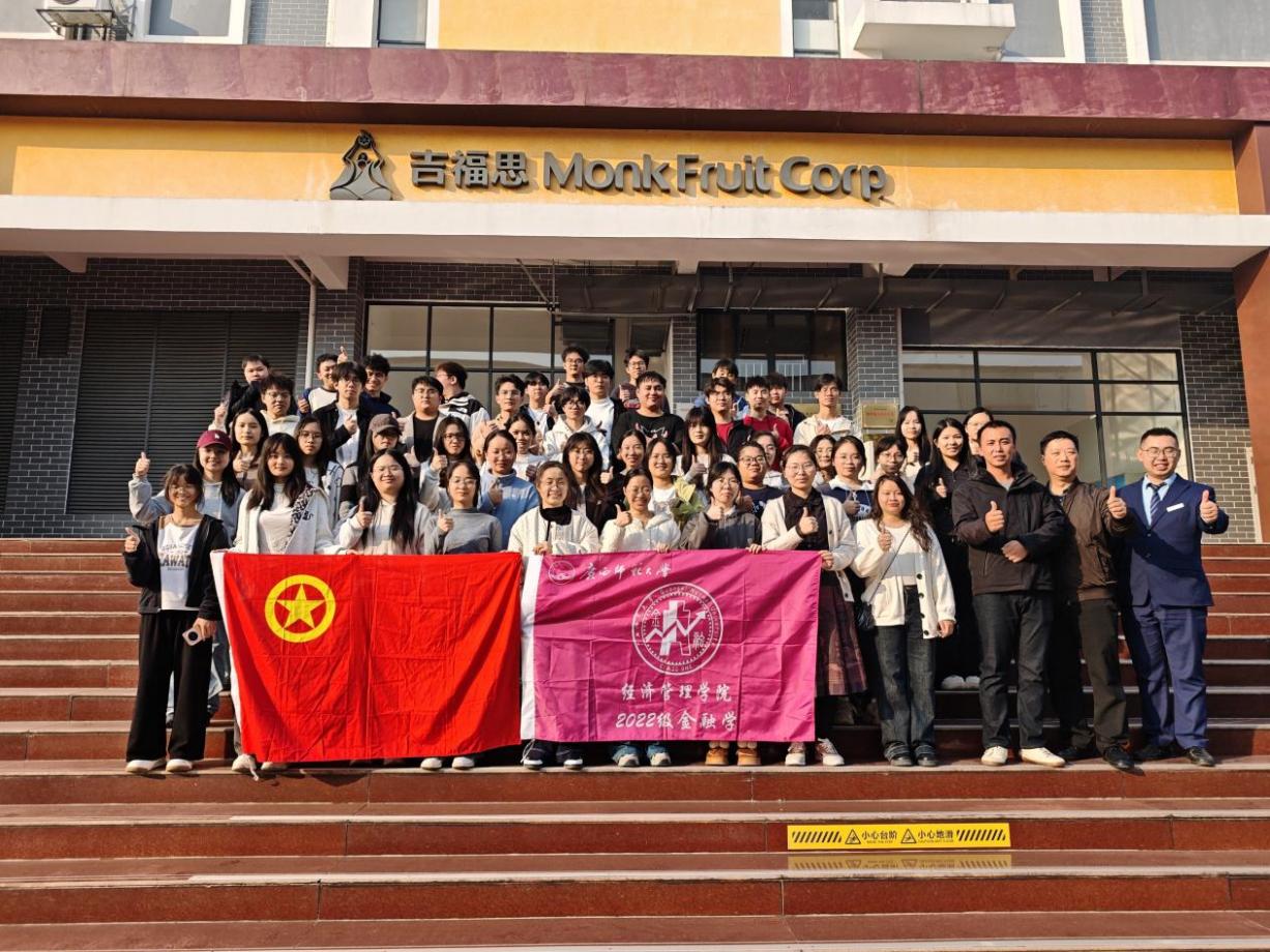为学习宣传贯彻党的二十届四中全会精神,落实中国人民银行与农业农村部联合发布的《关于加强金融服务农村改革 推进乡村全面振兴的意见》等文件精神,金融学2022级团支部于12月9日在《当代中国经济》课程授课教师、学院经济系钟学思教授和桂林银行雁山支行相关负责人的带领下,先后前往桂林银行桂林雁山支行、桂林吉福思罗汉果生物技术股份有限公司、桂林市雁山区罗安现代农业有限责任公司开展普惠金融深度服务实体经济、助力乡村振兴战略实施的创新实践调研。