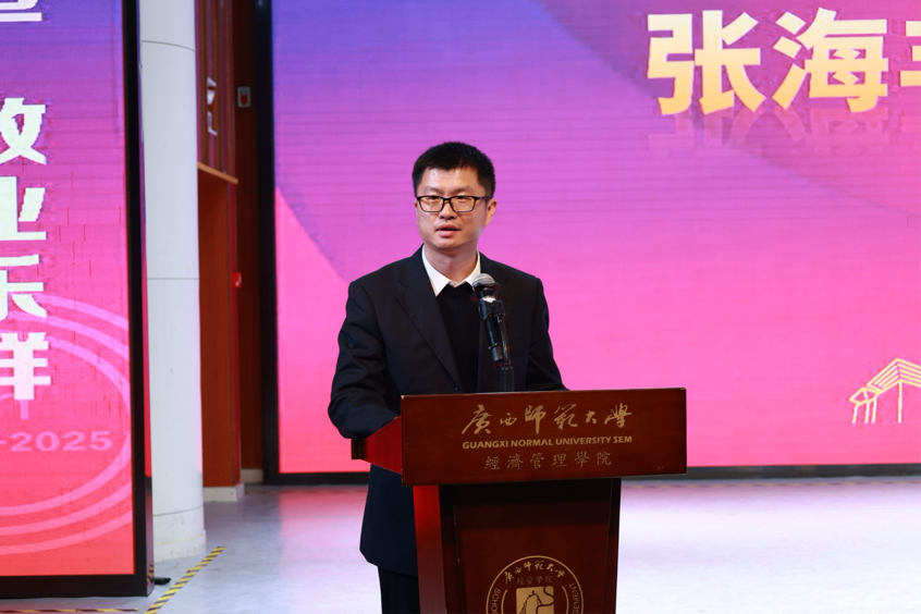典礼伊始,学院行政主要负责人发表致辞。他回顾了2025年作为学院成立20周年、MBA办学15周年的重要年份,学院以党建引领事业发展,在育人模式创新、学科建设突破、科研成果转化、社会服务提质等方面收获众多成果。站在新的历史起点,他号召全体经管人保持敢闯敢拼的劲头,聚焦立德树人根本任务、强化学科龙头作用、加强党建与业务深度融合等方面,坚定不移推动卓越经管建设