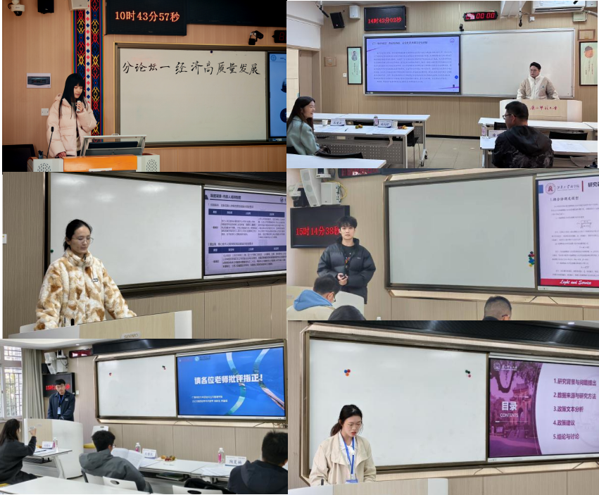 六个平行分论坛同步推进,覆盖经济高质量发展、数字经济、创新创业、公司金融、农业农村与绿色可持续发展、社会治理现代化六大核心领域。各分论坛的研究议题紧扣时代热点,兼具理论深度与实践价值。李强谊、刘骞文、黄天宇、苏诗琴、姚利好、刘晴晴等专家(老师)对每篇论文进行细致点评,参会同学积极提问交流,现场学术气氛活跃。