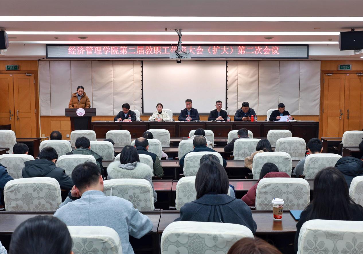 1月10日,经济管理学院在育才校区图书馆一楼报告厅召开了第二届教职工代表大会(扩大)第二次会议。学院领导班子成员、教代会代表参加了会议。会议由学院党委负责人主持。