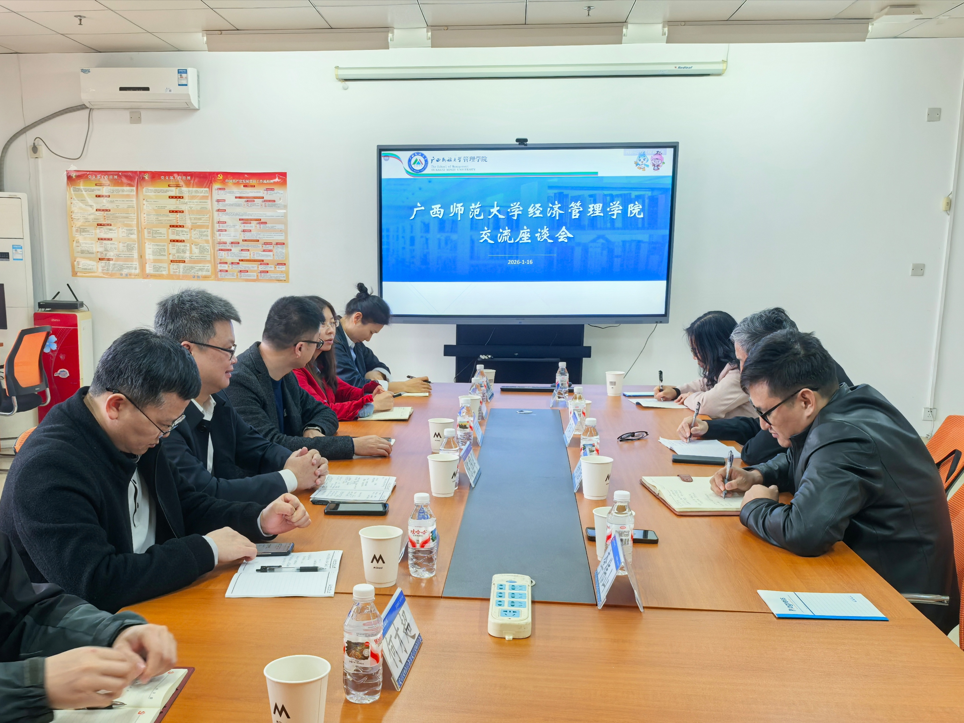 为加强校际联系,学习先进经验,共商学科发展,2026年1月16日上午,广西师范大学经济管理学院与广西民族大学管理学院在广西民族大学相思湖校区国际教育综合大楼411会议室开展座谈交流。