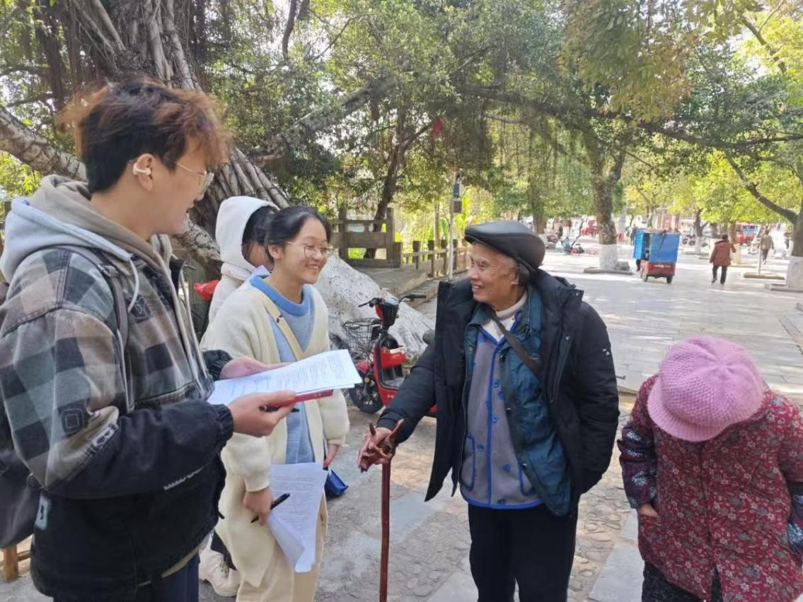 队员于永福县城中心开展随机采访与问卷调查