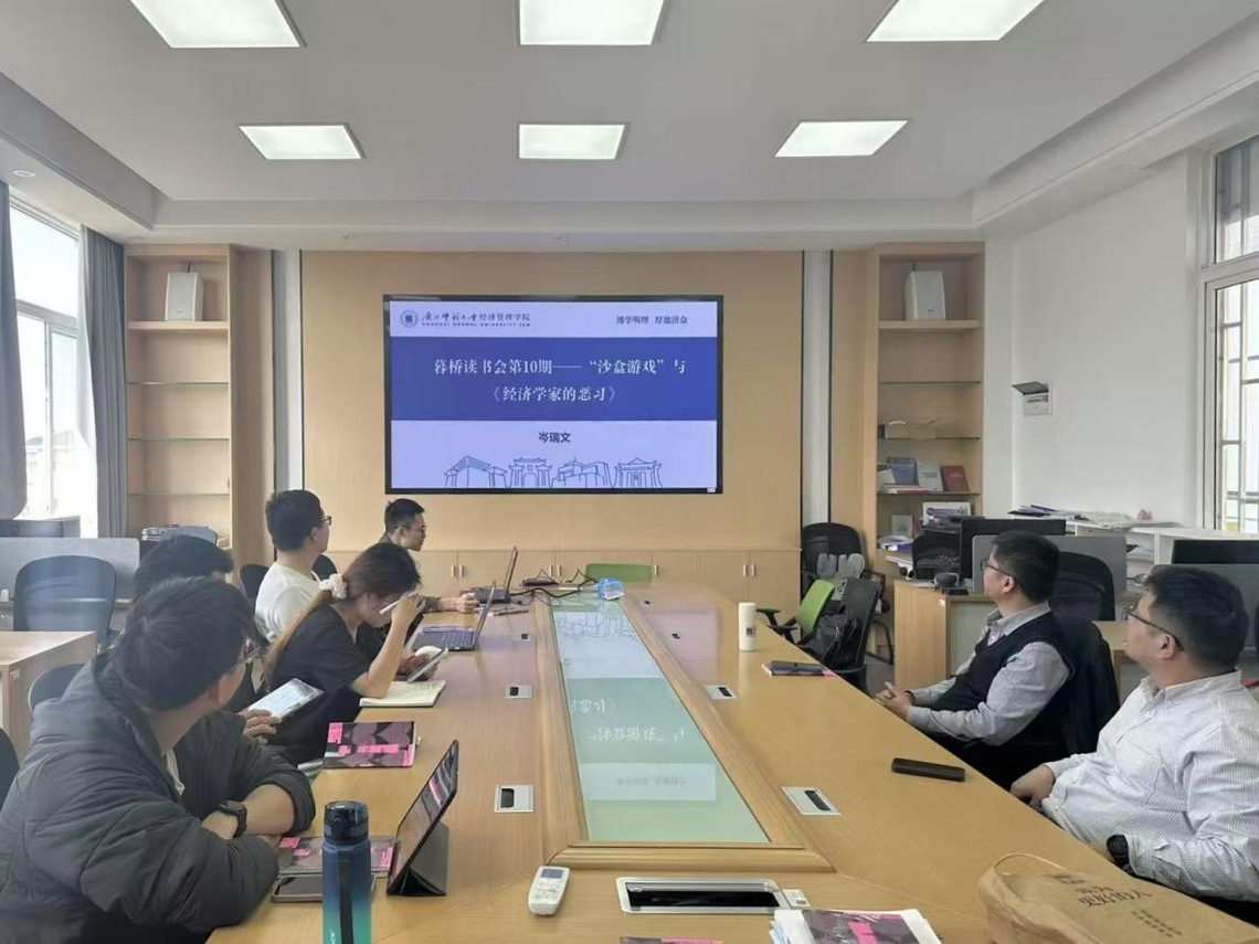 2026年3月13日上午,经济管理学院第10期“暮桥读书会”在雁山校区数字赋能经济发展重点实验室510会议室成功举办。学院张海丰老师、刘津老师参加了本次读书会。