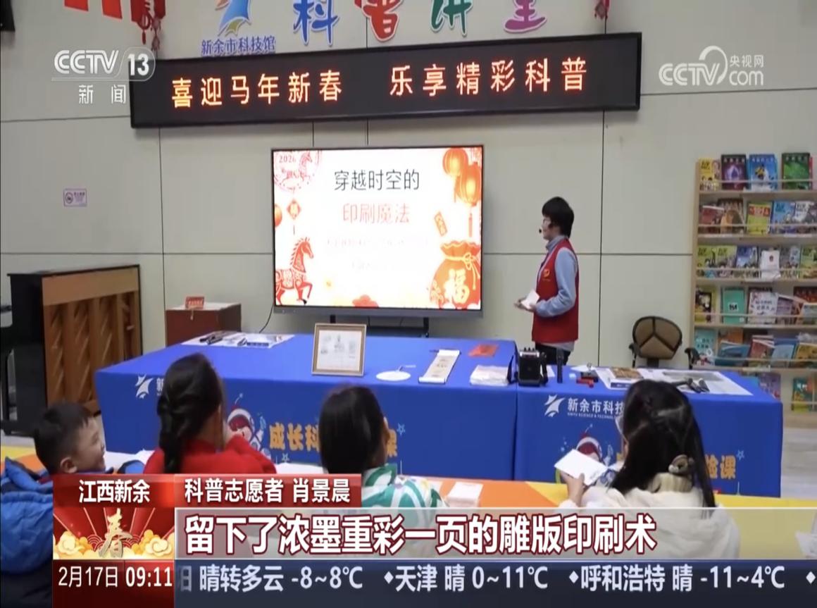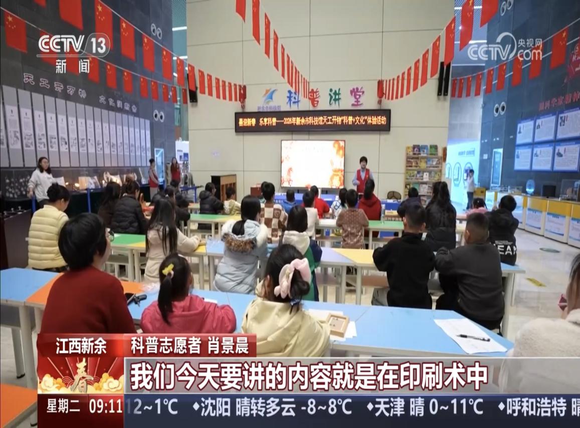 2026年2月17日,中央电视台CCTV-13 新闻直播间栏目关注报道广西师范大学经济管理学院2025级会计学专业学生肖景晨春节志愿服务事迹,其在江西新余市科技馆主讲的“天工开物”传统文化体验课程引发广泛关注。