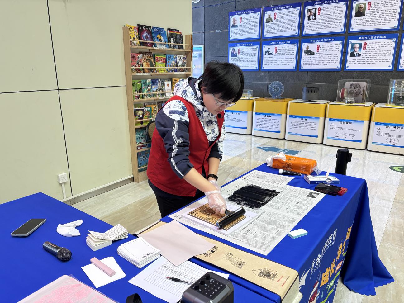 寒假期间,肖景晨响应学校号召,以“科普+文化”创新模式开设三场主题课程。她将《天工开物》古代科技智慧与现代科普深度融合,结合雕版印刷互动体验,让参与者沉浸式感受传统文化的科技魅力。活动累计吸引300余名市民参与,获得青少年与家长一致好评。