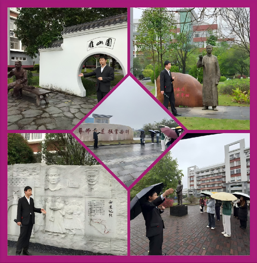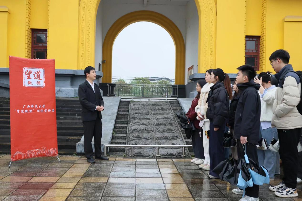 学院研究生专职辅导员以“寻访校史文化,赓续时代薪火”为题展开宣讲。他从学校办学历史和校训精神切入,结合陈望道、薛暮桥等校史人物事迹,带领同学们感悟师大精神。围绕陈望道先生传播新思想、新文化和翻译《共产党宣言》中文全译本首译本的历史贡献,他引导同学们体悟信仰力量与求真精神;围绕薛暮桥先生开设经济学课程、开展广西农村经济调查等经历,他勉励同学们传承理论联系实际的优良学风。行至起文楼前,他还结合杨东莼、曾作忠、林砺儒、张云莹四位校领导的办学事迹,讲述学校在不同历史时期革新教育、坚守文脉、延续薪火的发展历程。最后,他寄语同学们在今后的学习生活中传承师大精神,厚植家国情怀。