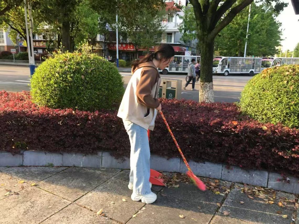 志愿者清扫校园地面